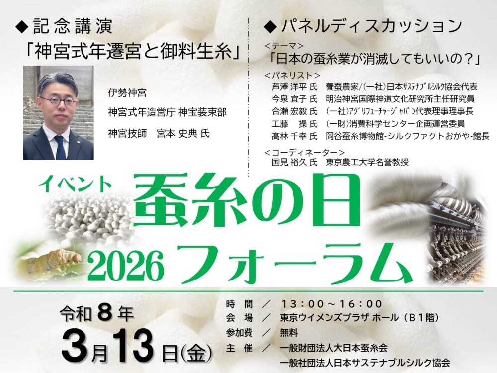 2026年3月13日(金)に「蚕糸の日2026フォーラム」を開催します。是非ご参加ください。