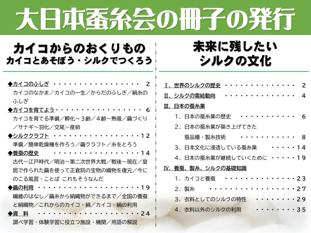 蚕糸会では新たに日本の蚕糸業の現状や歴史的・文化的価値を知っていただくための冊子を2冊発行しました。