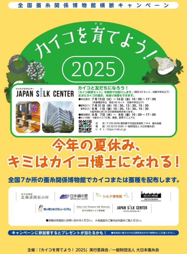 こうした中で、各地の博物館で個別に行われている「カイコ、蚕種の配布」活動を横断的に連携し、かつて日本の産業を支えた蚕糸業を知ってもらうことを目的として、「カイコを育てよう! 」キャンペーンを実施します。
